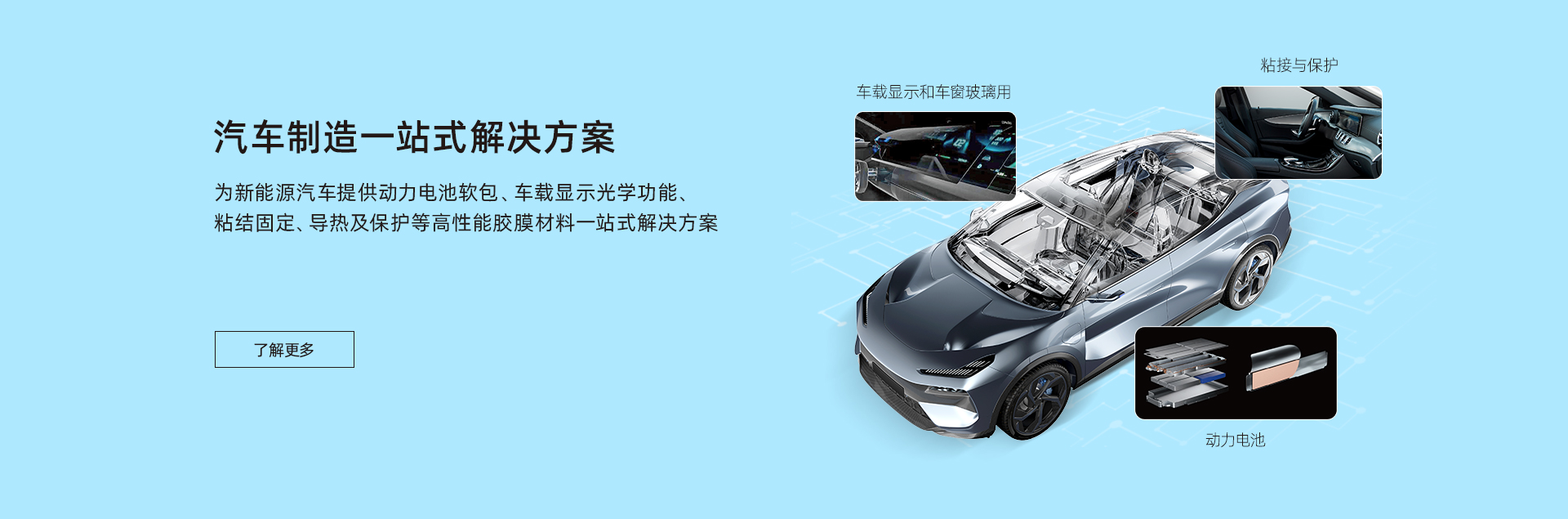 致力于為汽車制造、消費(fèi)電子、智慧顯示端口等行業(yè)客戶提供包括新能源材料、電子功能材料、光電顯示材料、有機(jī)硅材料在內(nèi)的產(chǎn)品研發(fā)、生產(chǎn)、銷售于一體化服務(wù),建立了專業(yè)的市場(chǎng)營(yíng)銷與技術(shù)服務(wù)團(tuán)隊(duì),為客戶提供高性能膠膜材料一站式解決方案。